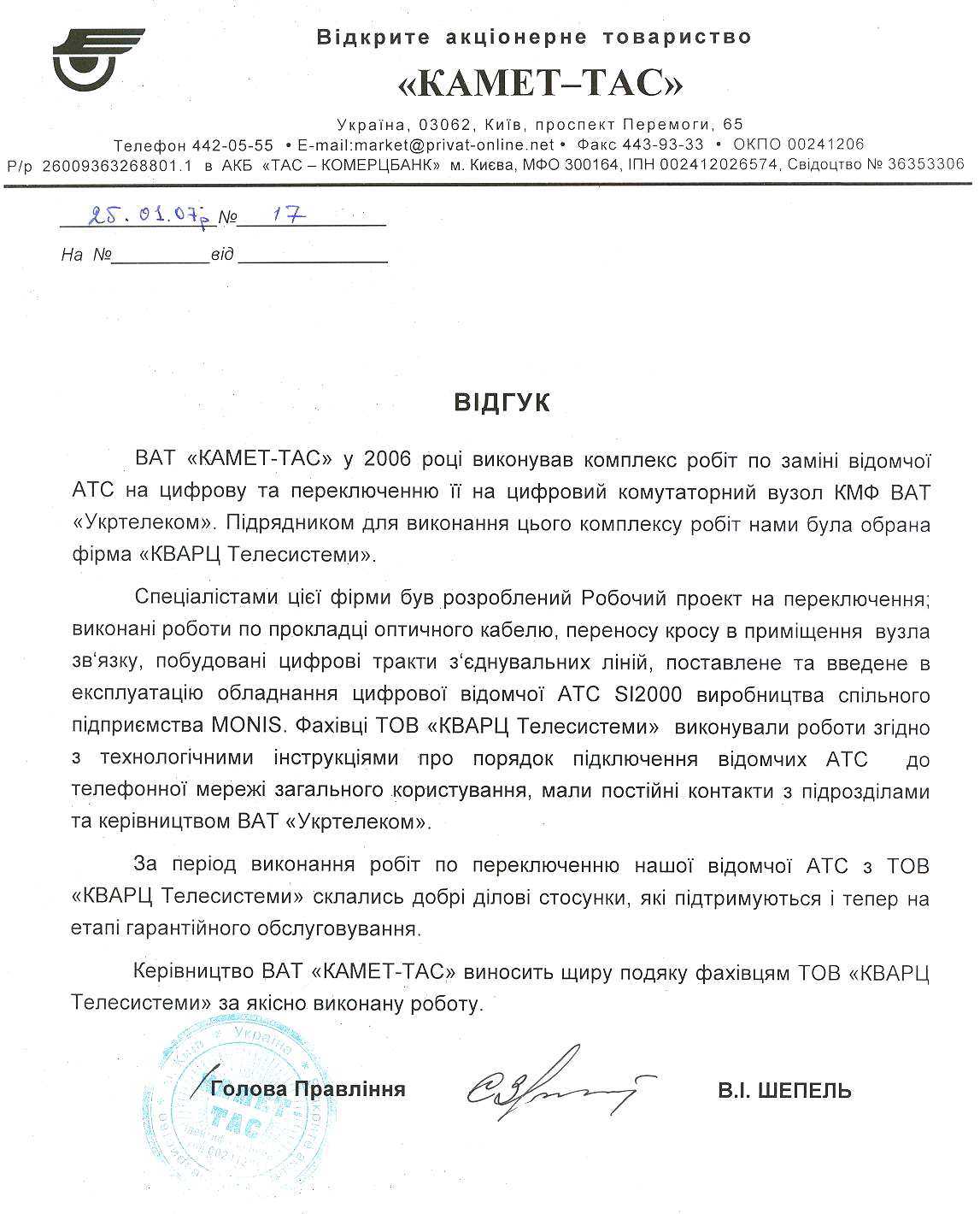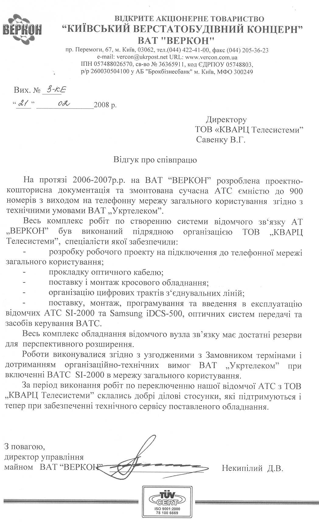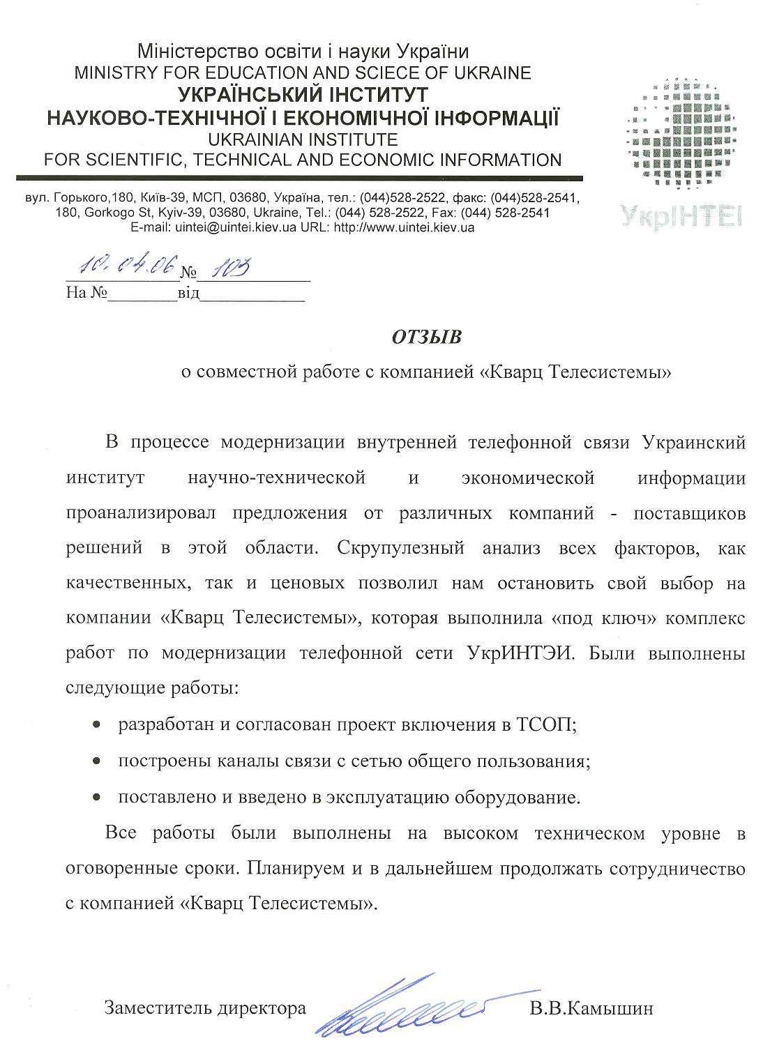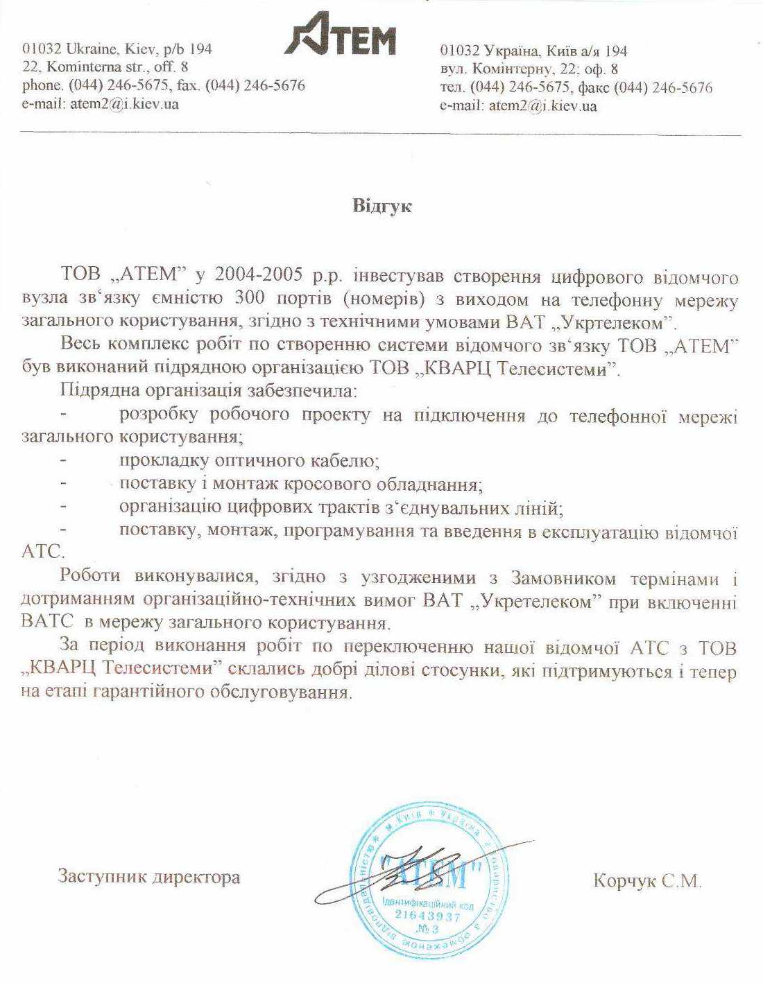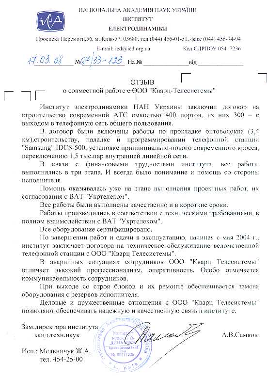 ООО "Кварц Телесистемы". тел. (380 44) 481 49 07